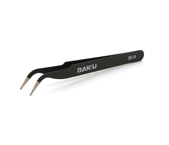 Опис: Пінцет вигнутий BAKKU BK-15 із чорним антистатичним покриттям призначений для точної та акуратної роботи при монтажі електронних компонентів. Має спеціальне антистатичне покриття, яке запобігає пошкодженню деталей при складанні.