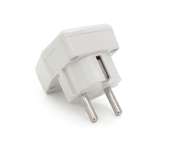 Опис : Вилка кутова YT-426A, призначена для використання з електроприладами, виконана в білому кольорі.