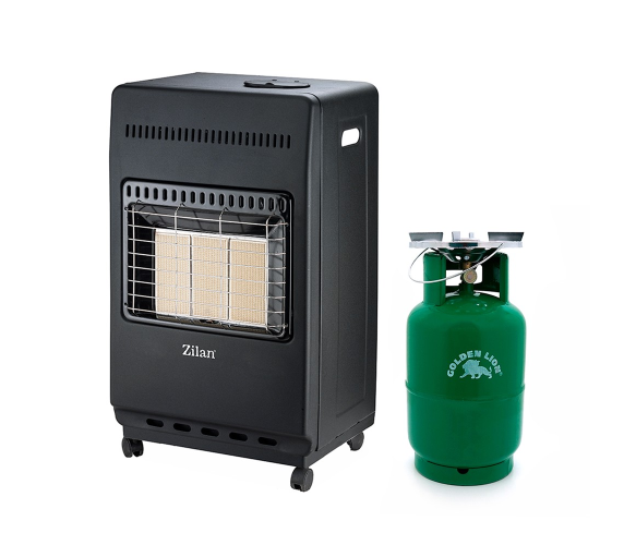 Комплект автономного газового опалення є Газовим обігрівачем ZILAN ZLN2830 потужністю 4200Вт з витратою газу 300 г/год, що комплектується Box + Газовим балоном Golden Lion об'ємом 5кг (12л).