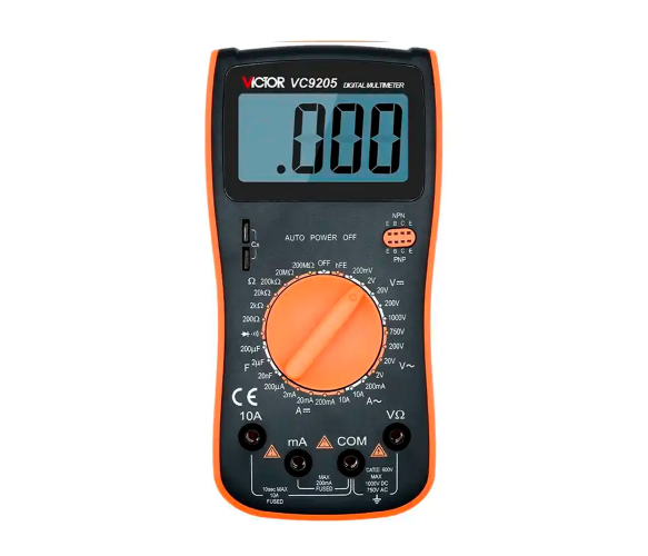 Мультиметр Victor VC9205 оснащений великим РК-дисплеєм з підсвічуванням, що дозволяє читати показання навіть в умовах поган