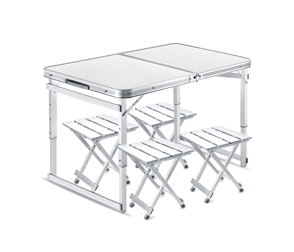 Цей розкладний стіл для пікніка з 4 стільцями та 3 рівнями висоти – ідеальний вибір для комфортного відпочинку на свіжому повітрі. Він має компактні розміри та легко трансформується, роблячи його зручним для транспортування та використання у різних умовах.