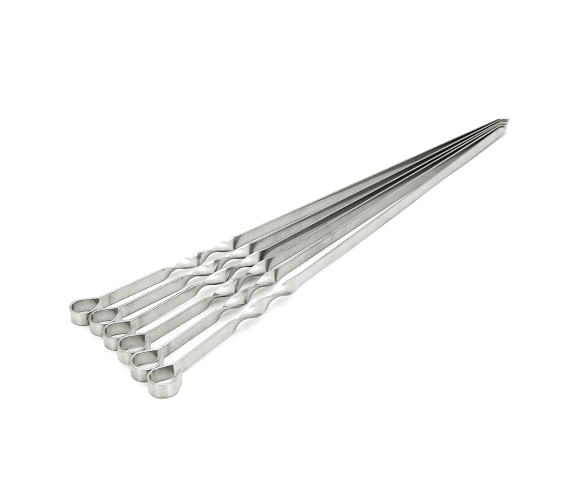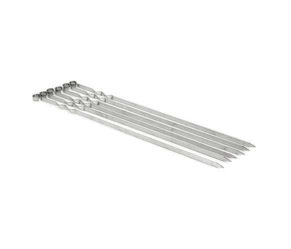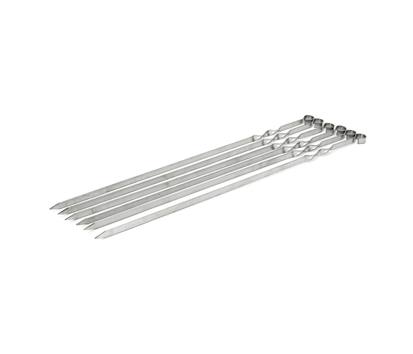 Опис: Набір шампурів із нержавіючої сталі, 6 штук, з довжиною 500 мм.Характеристики:- Матеріал: нержавіюча сталь- Кількість: 6 штук- Довжина: 500 мм