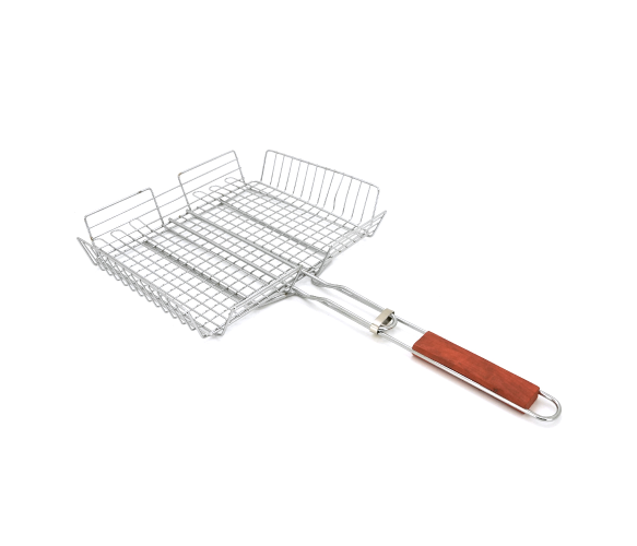 Ця Решiтка-гриль стане незамінним атрибутом ваших пікніків та дачних посиденьок. Високі борти та зручна ручка з дерев'яною вставкою роблять її максимально комфортною та безпечною у використанні. Готуйте соковиті стейки, овочі-гриль, ароматну рибу та багато іншого, радіючи себе та близьких кулінарними шедеврами з неповторним смаком серпанку.