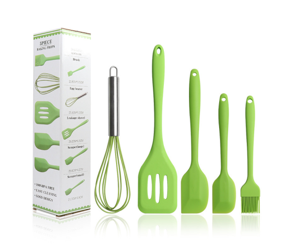 Кухонний набір з 5 предметів є зручним комплектом інструментів для приготування їжі та випічки. Набір включає віночок, 3 лопатки і пензель, виготовлені з високоякісного харчового силікону.