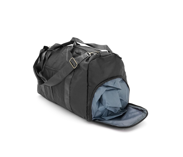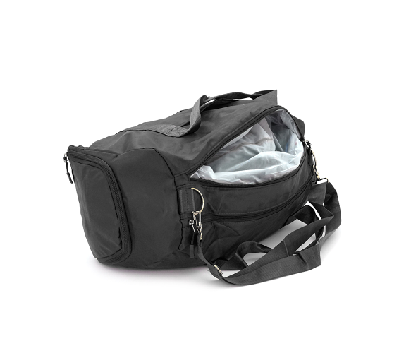 Опис: Сумка спортивна Merlion, чорного кольору, з розмірами 50x24x26 см та плечовим ременем.