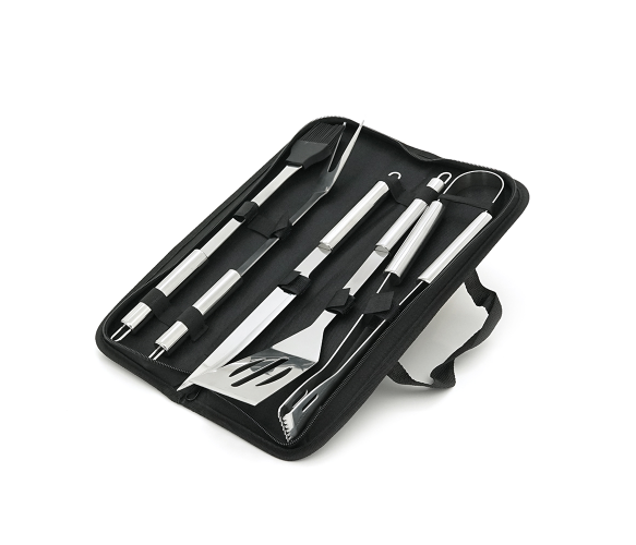 Цей набір із 5 предметів для барбекю – ідеальний помічник для будь-якого любителя смаження на відкритому вогні. Він включає всі необхідні інструменти для комфортного і безпечного приготування м'яса, риби, овочів та інших страв на грилі. Кожен інструмент виготовлений із високоякісної нержавіючої сталі, стійкої до корозії та високих температур, що гарантує тривалий термін служби. Ергономічні ручки з дерева або термостійкого пластику забезпечують зручне захоплення та запобігають ковзанню під час використання.