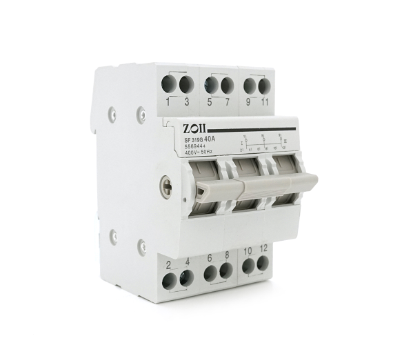 Автоматичний перемикач SF319G-3P-40A – якісний виріб, який використовується для ручного перемикання з основного джерела лінії електропостачання 220 вольт на резервну. Цей прилад перемикає фазу та нуль одночасно. Лінії, що вводяться, приєднуються знизу, навантаження приєднується зверху.