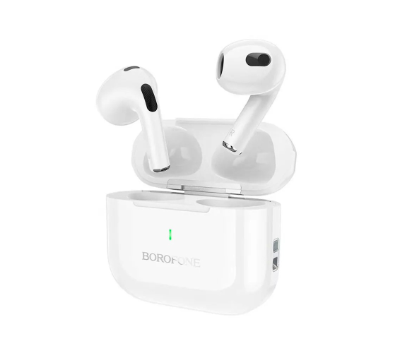 Навушники Bluetooth Borofone BW58 - це бездротові навушники у стильному білому кольорі, що поставляються разом з кейсом для зручного зберігання та перенесення.