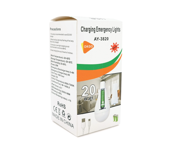 Ця лампочка з акумуляторами може використовуватися як аварійне освітлення у разі вимкнення електрики. Завдяки вбудованим акумуляторам вона може продовжувати роботу навіть за відсутності основного джерела живлення.