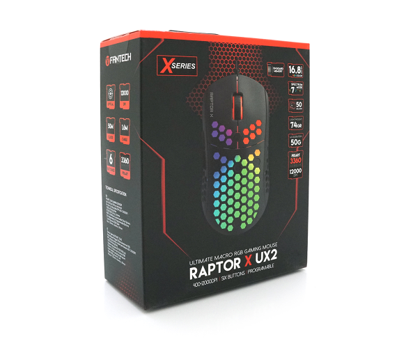 Ігрова миша RAPTOR UX2 X забезпечує надійне керування та точність для ваших ігрових сесій та повсякденної роботи. З високою роздільною здатністю DPI, що налаштовується підсвічуванням RGB і зручним дизайном, ця миша створена для досягнення максимальних результатів.