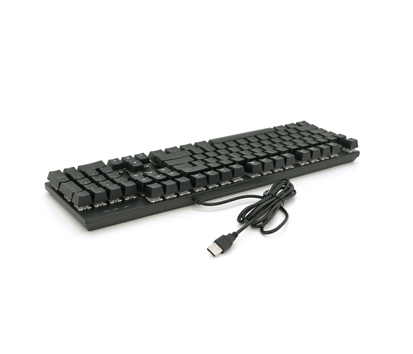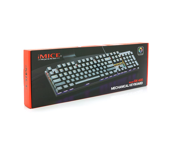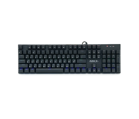 Клавіатура iMICE GK600 USB є компактним пристроєм у чорному кольорі з англійською розкладкою та 104 клавішами. Її довжина кабелю становить 100 див.