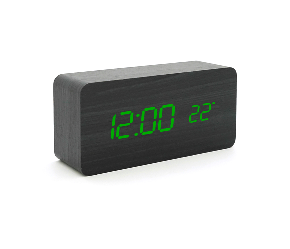 Електронний годинник VST-862 Wooden (Black) з датчиком температури, будильником, живленням від кабелю USB та зеленим підсвічуванням.