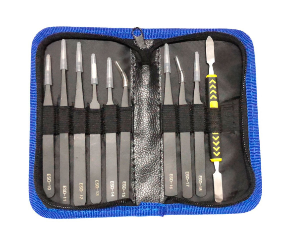 - Включає 9 різних типів пінцетів, призначених для різних видів дрібної роботи