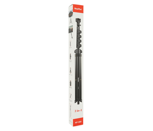 Опис: Штатив Nee Pho NP-588 2 в 1 є універсальним пристроєм, який поєднує в собі функції штатива і Bluetooth пульта. Це зручний та компактний пристрій, який підходить для використання під час зйомки фото та відео.