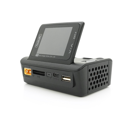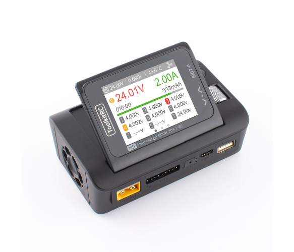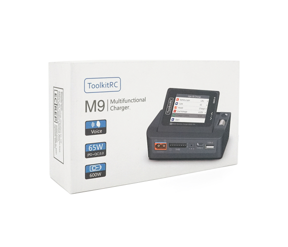 Зарядний пристрій ToolkitRC M9 600Вт призначений для заряджання різних типів акумуляторів, таких як LiPo, LiHv, Li-ion, NiMh, LiFe, Pb, а також може використовуватися для підключення USB-пристроїв. Воно оснащене роз'ємом XT60, має вхідну напругу від 7 до 35В і важить 235г. Блок живлення до комплекту не входить.