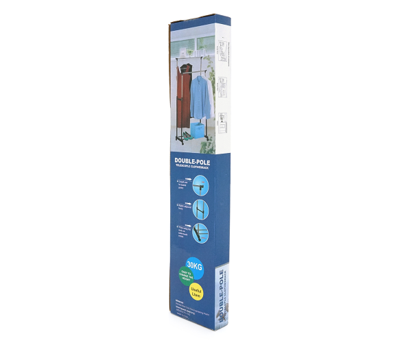 Опис: Подвійна телескопічна вішалка для одягу призначена для зручного зберігання та організації одягу в гардеробі. Вона має два висувні стрижні, що робить її зручною та практичною для використання.