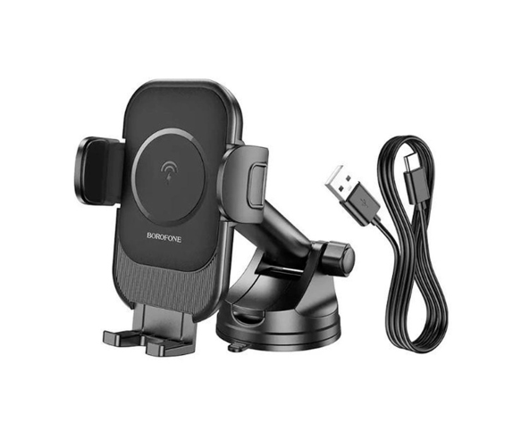 Матеріал міцний пластикТримач-затискач(ширина 50-87мм)Бездротова зарядкаКабель USB/Type-C 1 метрРозміри 135*115*80ммКолір чорнийВага 280грам