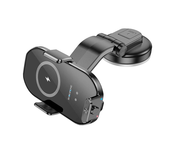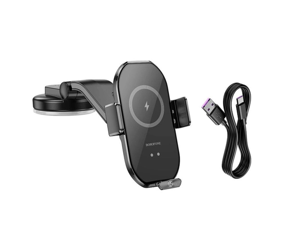 Матеріал міцний пластикТримач-затискач(ширина 60-85мм)Бездротова зарядкаКабель USB/Type-C 1 метрРозміри 130*120*85ммКолір чорнийВага 295грам