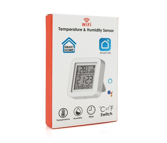 Опис: WI-FI датчик температури та вологості повітря RSH-TH02 призначений для вимірювання температури та вологості повітря з використанням Wi-Fi технологій для передачі даних.