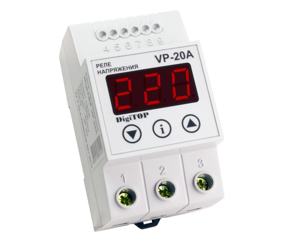 Реле напруги VP-20A призначене для захисту електрообладнання та побутової техніки від неприпустимих перепадів напруги.