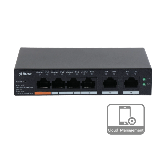 Потужність PoE 1 порт 60Вт, 2-4 порти 30Вт (бюджет 60 Вт)