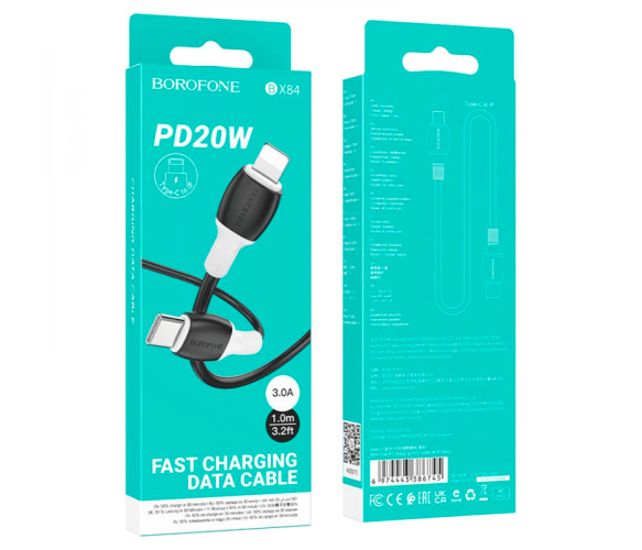 Кабель Borofone BX84 є кабелем спільного використання для пристроїв з роз'ємами Lighting і Type-C. Він має високу швидкість зарядки, 3A і потужність 20W. Довжина кабелю становить 1 метр, він має білий колір та поставляється у зручній коробці.