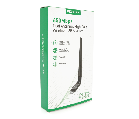 Бездротовий мережний адаптер Wi-Fi-USB LV-UAC24BD є бездротовим підключенням до мережі інтернет через порт USB. Він оснащений антеною для покращення прийому сигналу, підтримує стандарти 802.11 a/b/g/n та забезпечує швидкість передачі даних до 650Mbps. Також є модуль Bluetooth для бездротового підключення до інших пристроїв.
