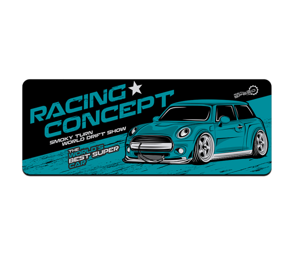 Тканинний килимок Racing Concept з боковою прошивкою, призначений для використання в автомобілі. Товщина килимка становить 2 мм, колір темно-синій. Килимок упакований у пакет.