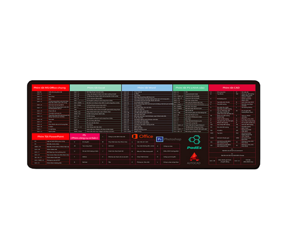 Тканинний килимок чорного кольору з бічною прошивкою і товщиною 2 мм, призначений для використання разом з Shortcut keys-1. Розміри килимка становлять 300*700 мм. Комбінація в'єтнамською мовою