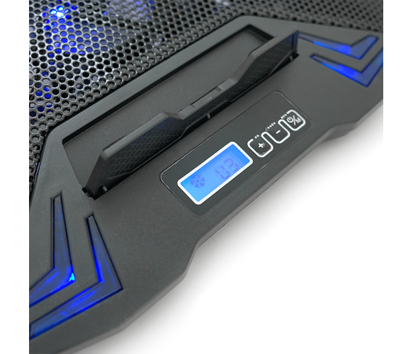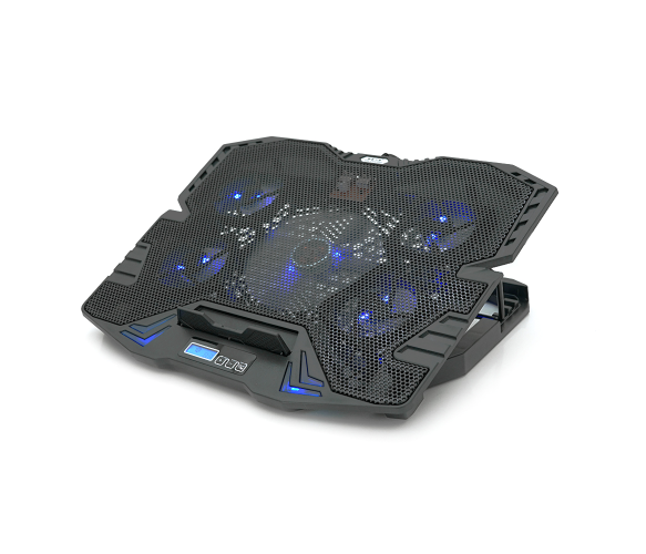 Підставка під ноутбук IceCoorel K5, 10-15", 1*125mm 1400±10% RPM + 4*70mm 2500±10%RPM, корпус пластик+алюміній, 2xUSB2.0, 365x297x30mm, Blue,Box, Q18