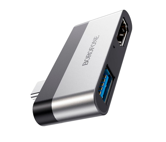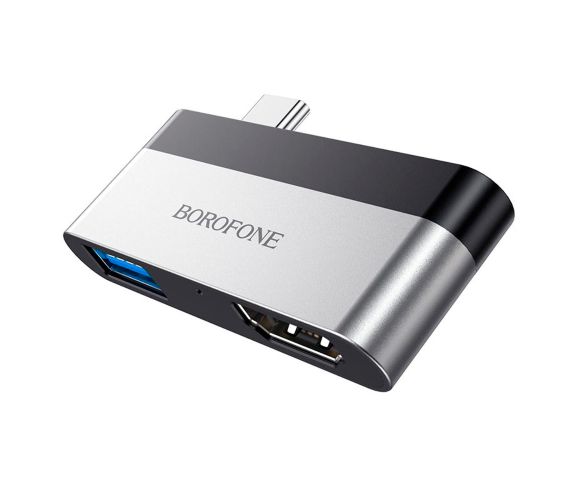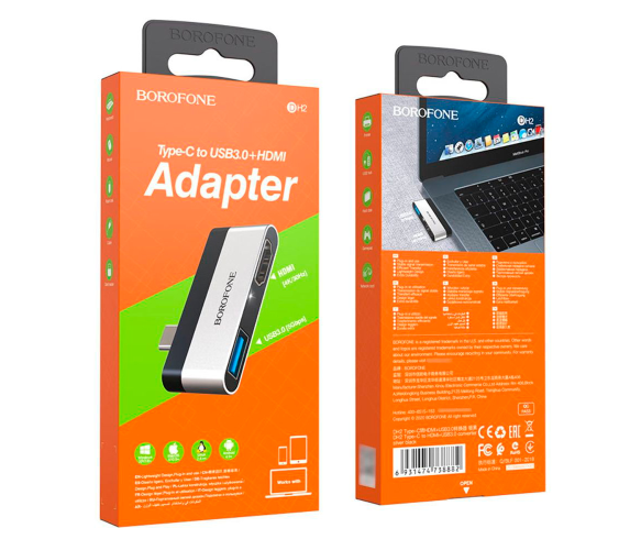 Опис: Перехідник BOROFONE DH2 Type-C(Male) - USB3.0+2*HDMI, чорний, в упаковці.Характеристики:1. Тип роз'єму: Type-C(Male)2. Підтримувані інтерфейси: USB3.0+2*HDMI3. Колір: чорний4. Упаковка: коробка