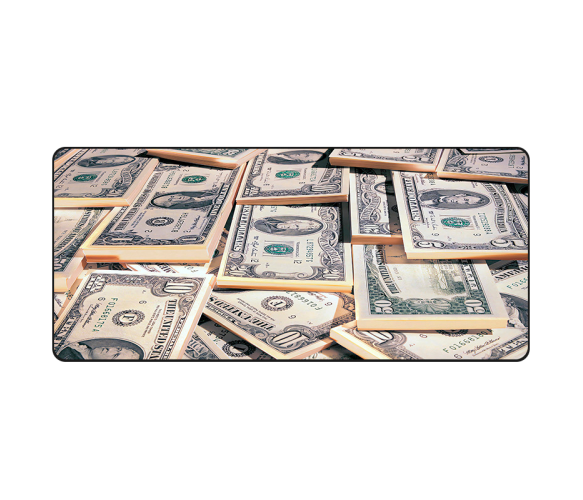 Тканинний килимок Dollars розміром 300*800 мм з боковою прошивкою. Товщина 5 мм, сірий колір. Запакований у пакет.