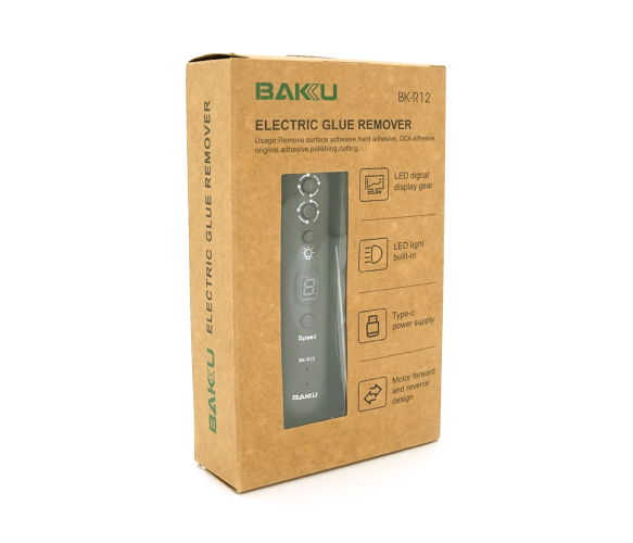 Електроінструмент BAKU BK-R12 призначений для зняття плівки OCA з дисплея. Він оснащений регулюванням моменту, що крутить, і підсвічуванням.