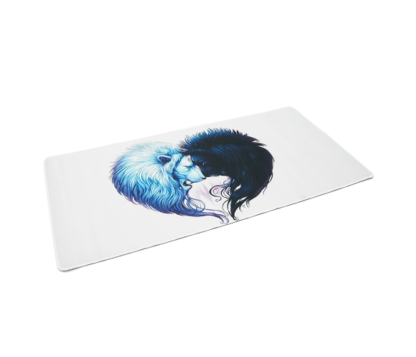 Тканинний килимок із зображенням "Білий та Чорний лев", з боковою прошивкою та товщиною 3 мм. Розмір: 400*800 мм. Колірна гама - White/Black. Запакований у пакет.