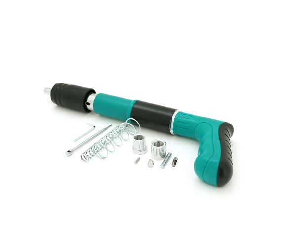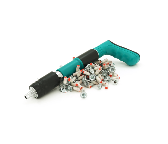 Цей набір включає пістолет будівельно-монтажний і 100 цвяхів монтажних піроксилінових. Він поставляється у зеленому ящику.