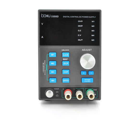 Блок живлення із цифровою індикацією BAKU BA-3305D призначений для подачі електричного струму з напругою 30V та струмом 5A.