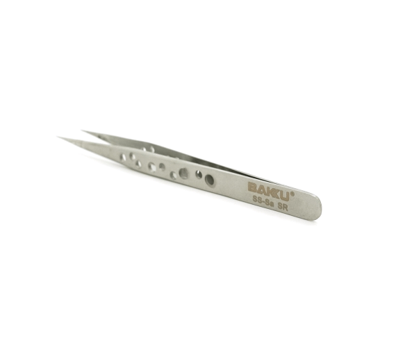Опис: Пінцет прямий BAKU BK V9 SS SA - це інструмент, призначений для точного захоплення та утримання дрібних предметів. Виготовлений з нержавіючої сталі, має прямі кінчики для більш точної роботи.