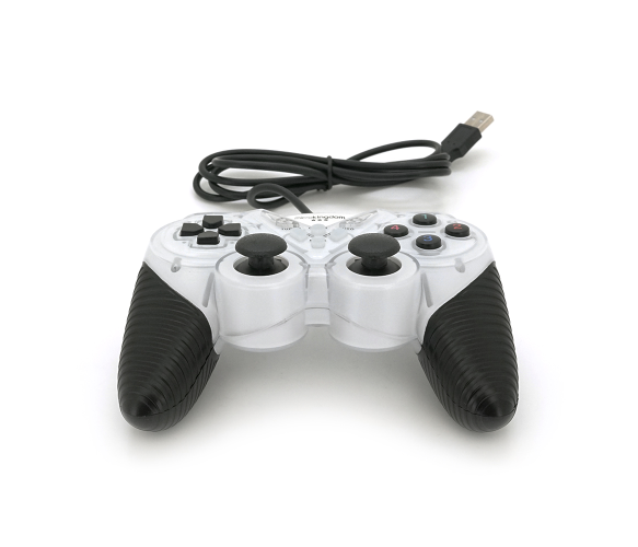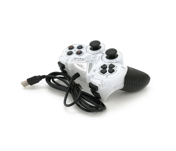 Геймпад Brazzers BR-8600 - це провідний ігровий контролер, призначений для використання з комп'ютером. Він виконаний у білому кольорі та забезпечує зручність та задоволення від ігрового процесу завдяки функції Double Shock.