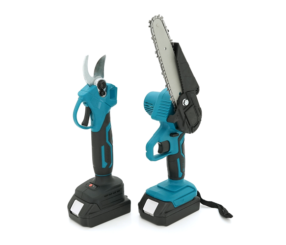 - Секатор: Акумуляторний секатор, який використовується для обрізання гілок або садових рослин.