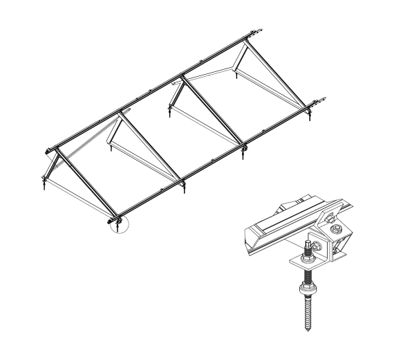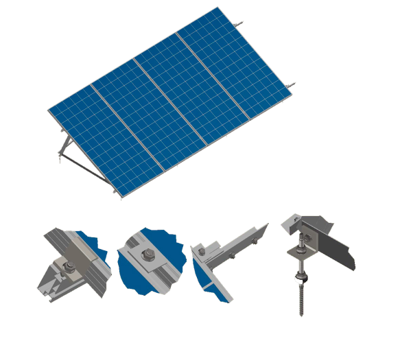 Для плоских дахів або з невеликим кутом нахилу підійде система кріплення зі зміненим кутом нахилу, яка дозволяє встановити сонячні панелі з кутом нахилу від 5 до 35 градусів.