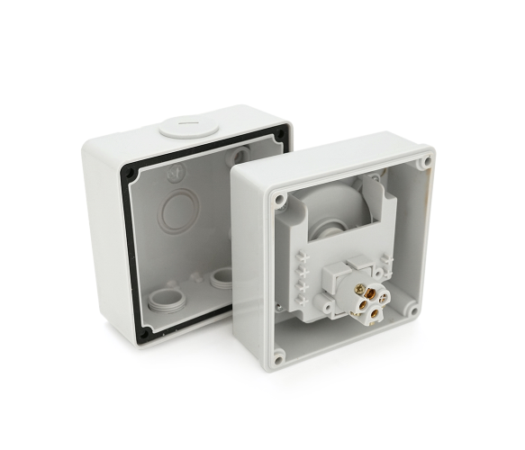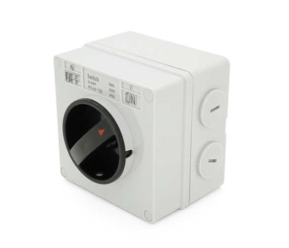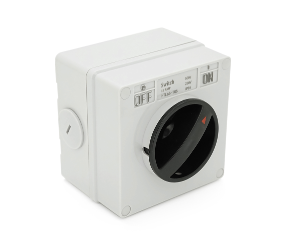 Цей вимикач зовнішнього монтажу із двостороннім виведенням та захистом IP65 призначений для використання в умовах підвищеної вологості. Він має колір сірий і має наступні характеристики: