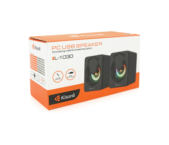 Колонки 2.0 Kisonli L-1030 призначені для підключення до ПК та ноутбука. Вони оснащені USB та 3,5 мм роз'ємами, мають потужність 2x3W та відтворюють звук у частотному діапазоні від 20Гц до 20КГц. Розміри колонок становлять 20х11х13мм. Колір чорний.