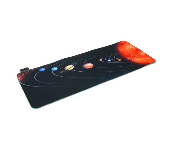 Килимок для миші "Solar system" з тканинним боковим прошивкою та підсвічуванням RGB. Має товщину 3 мм та живиться від USB з кабелем довжиною 1,8 м. Поставляється у кольоровому впакуванні.