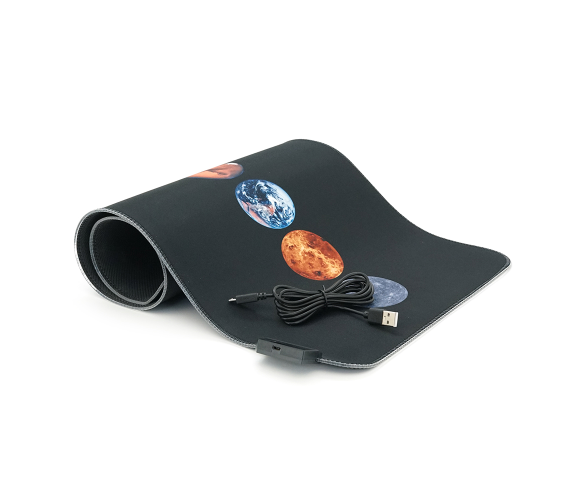 Тканинний килимок для миші "Planets marbles" з боковою прошивкою та RGB підсвічуванням. Має товщину 3 мм і поставляється у Color Box. Живлення здійснюється через кабель USB довжиною 1,8 м.