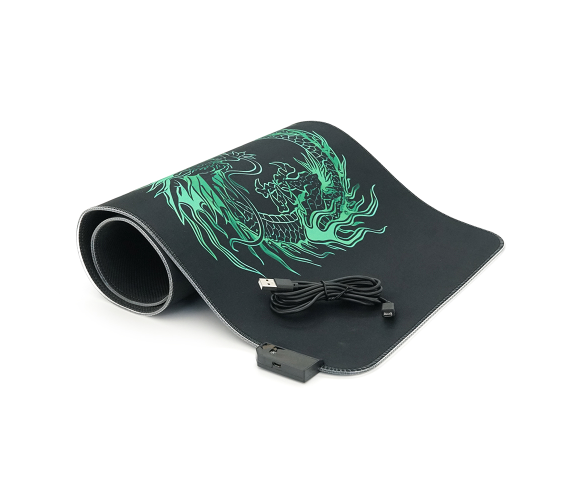 Килимок для миші "Green dragon" тканинний з боковою прошивкою призначений для зручної роботи з мишею, забезпечуючи плавне ковзання та точне керування. Він також оснащений RGB підсвічуванням, яке надає йому стильного зовнішнього вигляду, і має живлення від USB 1,8 м для зручності підключення.