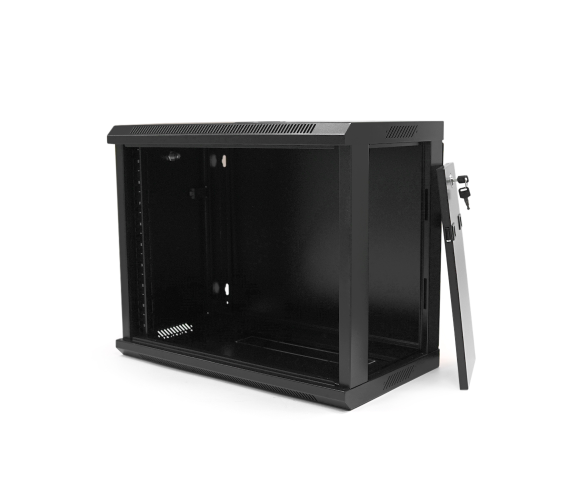 Шафа Merlion 9U являє собою високоякісний стелаж із загартованим склом та сталевою конструкцією. Він має чорний колір, замок для безпечного зберігання та поставляється у розібраному вигляді для зручності транспортування.