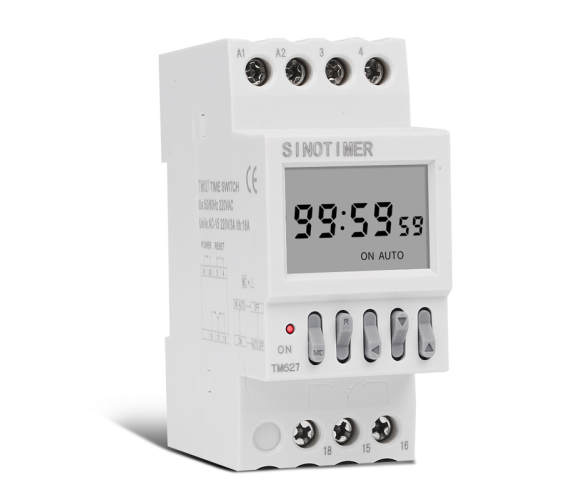 Реле часу Sinotimer TM627 призначене для встановлення на DIN-рейку. Воно оснащено РК-дисплеєм та має функцію програмування. Максимальне навантаження складає 16А при напрузі 220V. Габаритні розміри пристрою становлять 82х68х36 мм.
