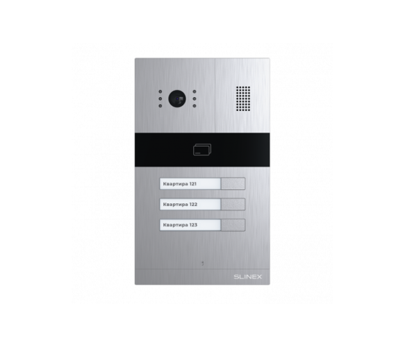 Slinex MA-03CRHD – це панель виклику на 3 абоненти в ультрасучасному дизайні. Панель має безліч переваг, серед них: кольорова CMOS камера з роздільною здатністю 2 Mp (AHD) / 1 Mp (AHD) / 960 TVL (CVBS), вбудований комбінований зчитувач безконтактних карток EM-Marin, MIFARE, механічний ІЧ фільтр на 6 світлодіодів та підсвічування іменних табличок.
