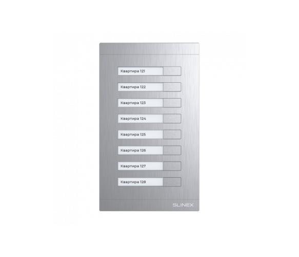 Slinex MA-08 – це додатковий модуль розширення для панелей MA-01CRHD, MA-02CRHD, MA-03CRHD, MA-04CRHD. За допомогою даного модуля до вищевказаних викликів можна підключити до 16 абонентів додатково (при підключенні двох модулів одночасно).