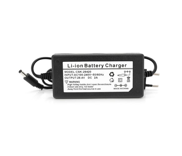 - Зарядний пристрій призначений для заряджання літій-іонних (Li-ion) акумуляторних батарей номінальною напругою 29,4 В, ємністю 7S та струмом заряду 2 А.